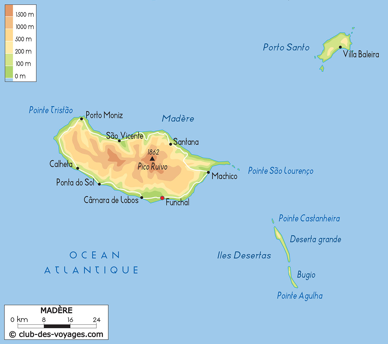 Nos différentes cartes de l'ile de Madère à explorer: carte physique, carte routière, vue satellite. Pour tout savoir sur la géographie de l'ile de Madère.