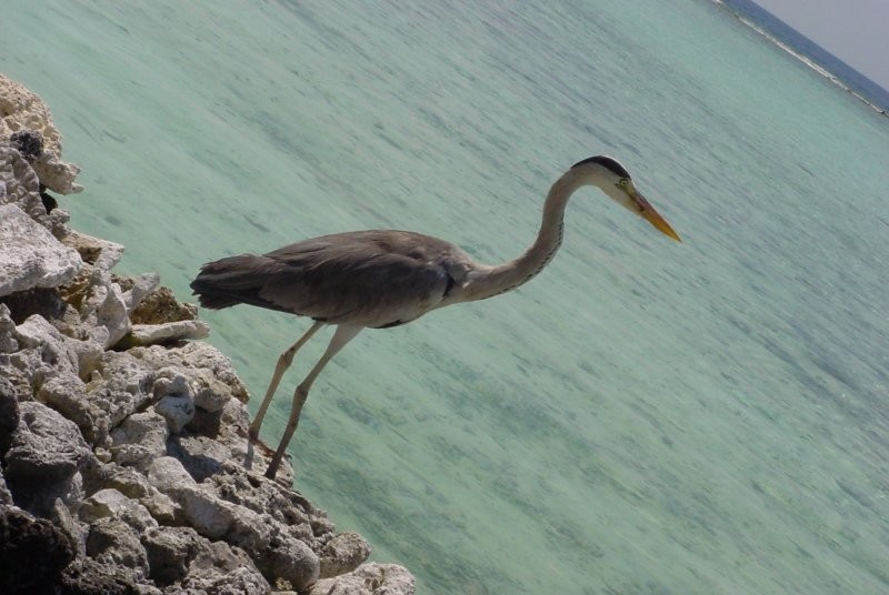 Lagon Rihiveli : Un héron à Rihiveli |