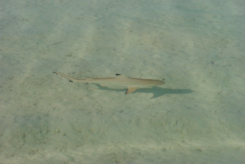 Lagon Rihiveli : Un petit requin au bord de la plage |