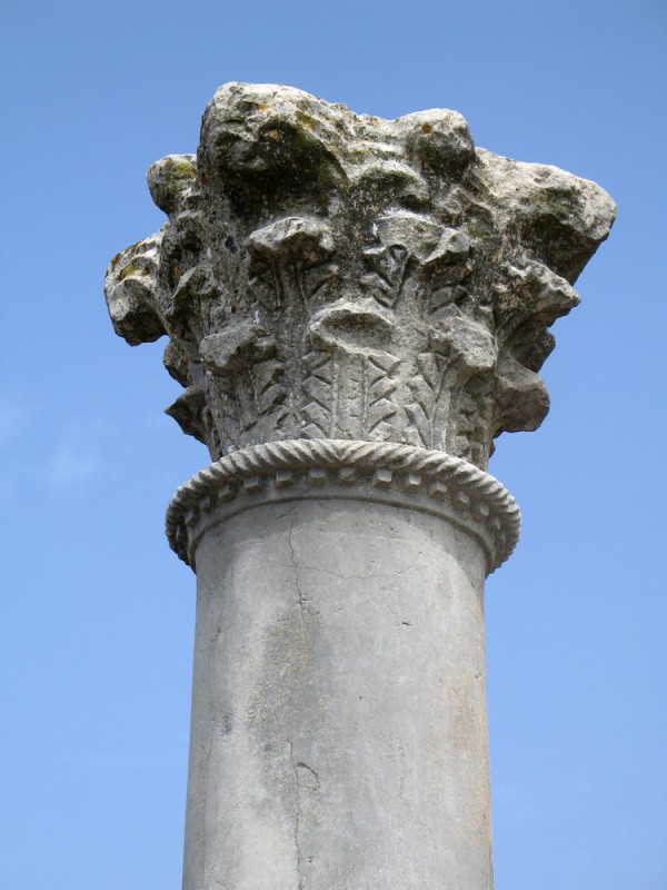 Le site archéologique de Volubilis : Détail d'une colonne du capitol |