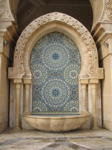La mosquée Hassan II : Gros plan sur la fontaine |