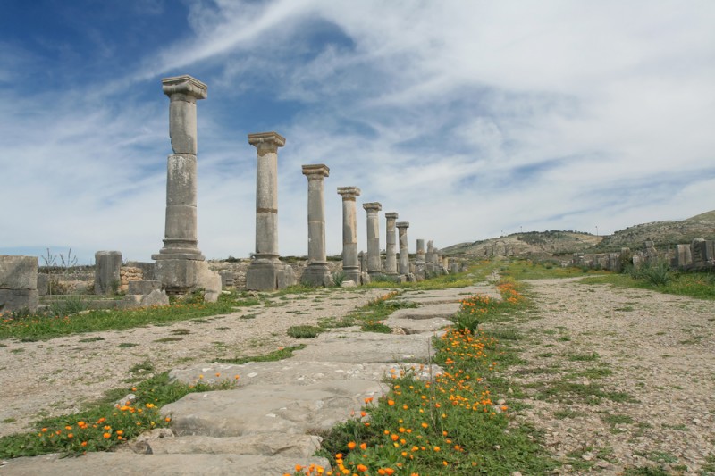 Le site archéologique de Volubilis : Le Decumanus Maximus (voie principale) |