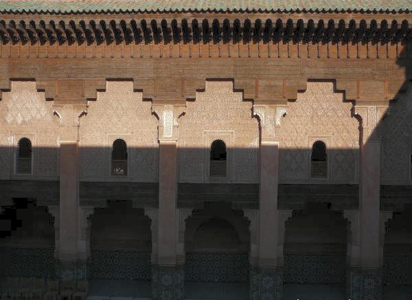 La médersa Ben-Youssef : Les chambres disposées autour du patio |