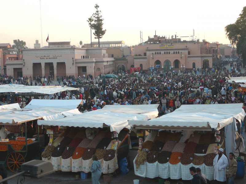 La place Jemaa-El-Fna : Les marchands d'épices |