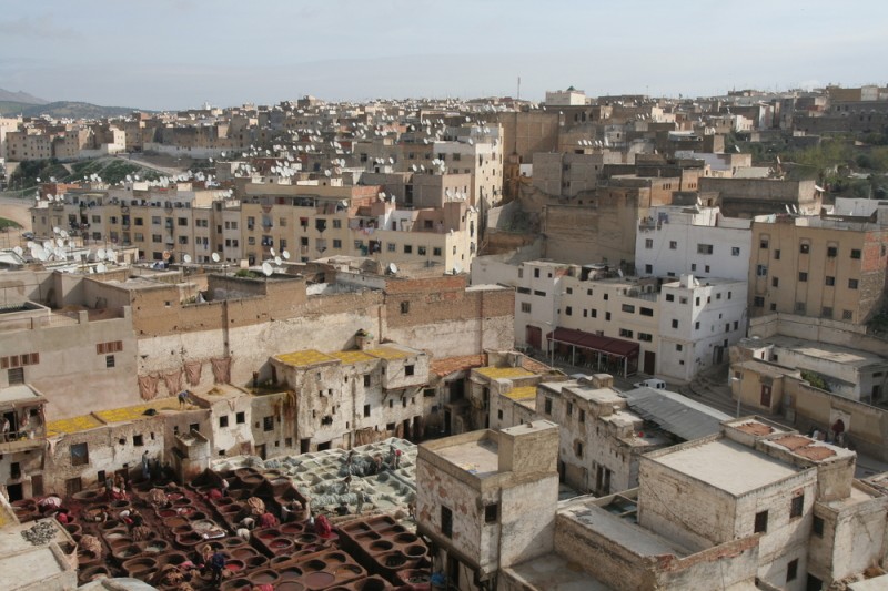Les tanneries de Fès : Les tanneries vus depuis une terrasse |
