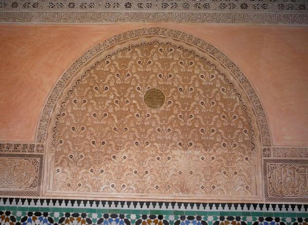 La médersa Ben-Youssef : Motifs géométriques sculptés |