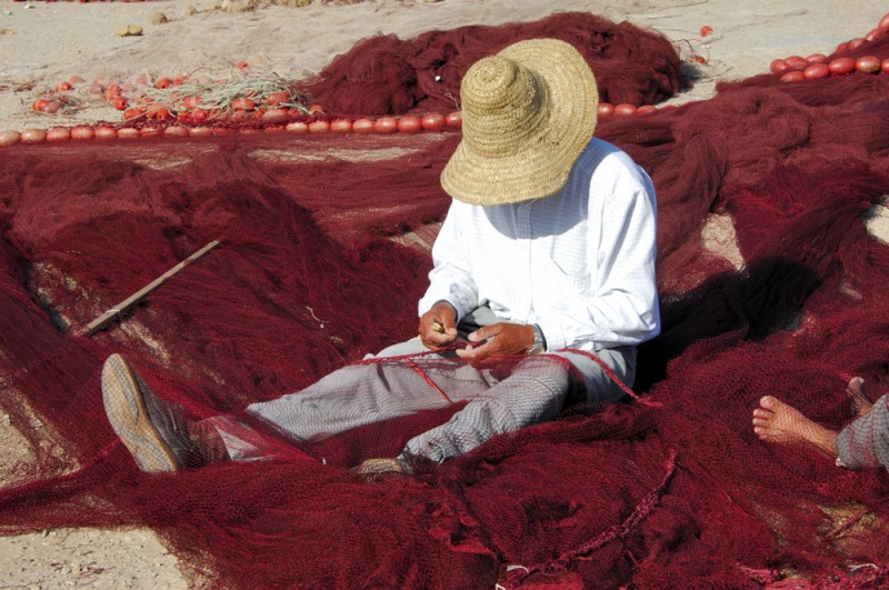Le port d'Essaouira : Un pêcheur réparant ses filets |