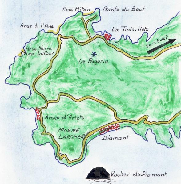Les Anses d'Arlet désigne à la fois le petit village et la belle anse de sable fin le long de laquelle il s'étend.