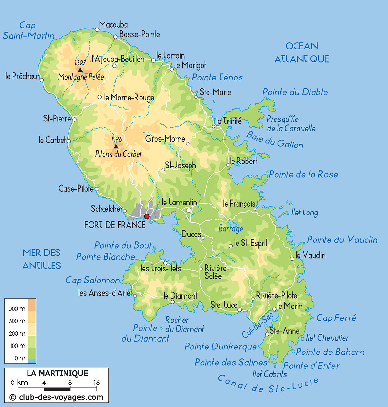 Nos différentes cartes de la Martinique à explorer: carte physique, carte routière, vue satellite. Pour tout savoir sur la géographie de la Martinique.