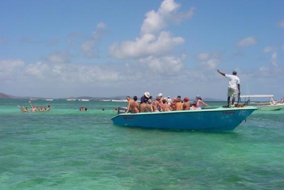 Le départ d'une course de yoles depuis la plage du diamant