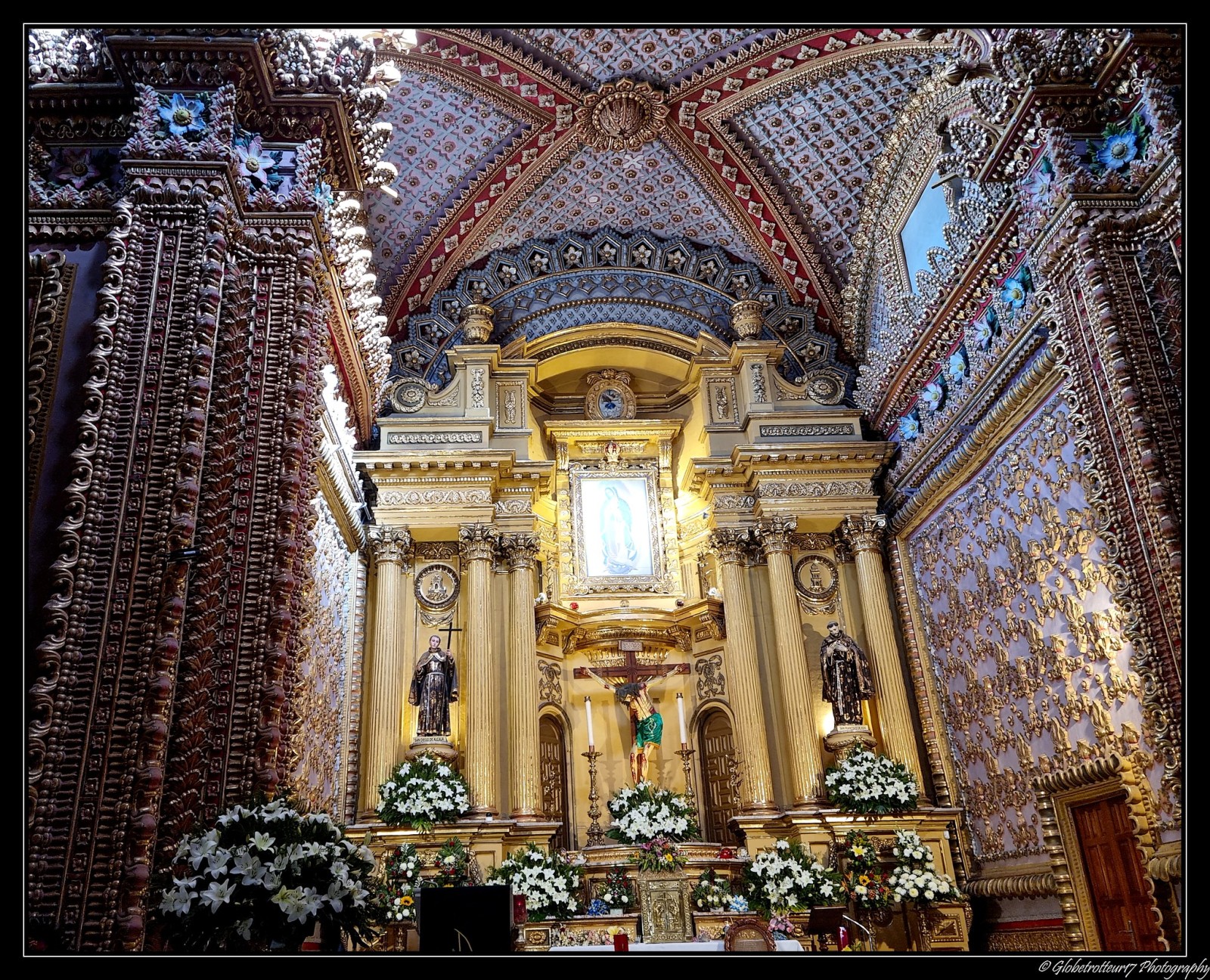 L'intérieur de l'église Nuestra Señora de Guadalupe est un petit joyau. Un feu d'artifice de couleurs vives, plafond et murs sont peints en rouge, jaune et fuchsia.