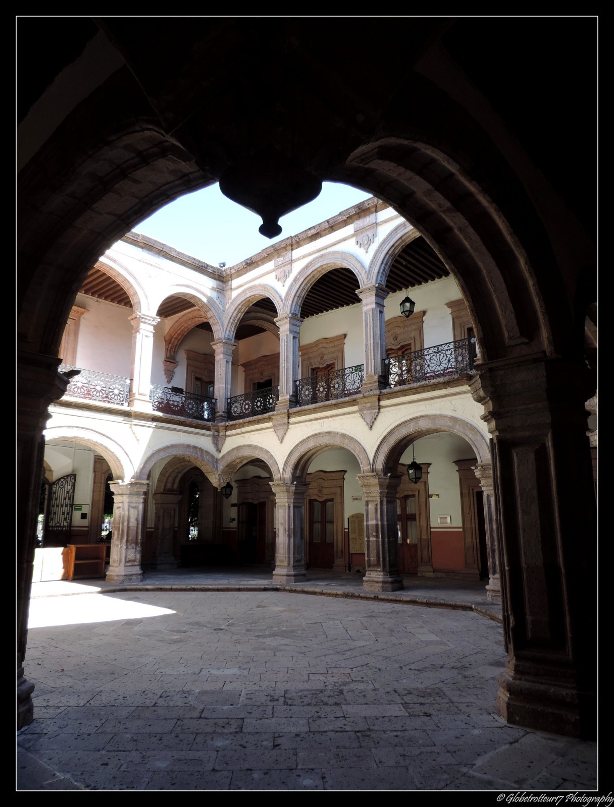 Le Palais de Justice. Bâtiment remanié en 1885 avec les arcades du patio reposant sur des colonnes.
