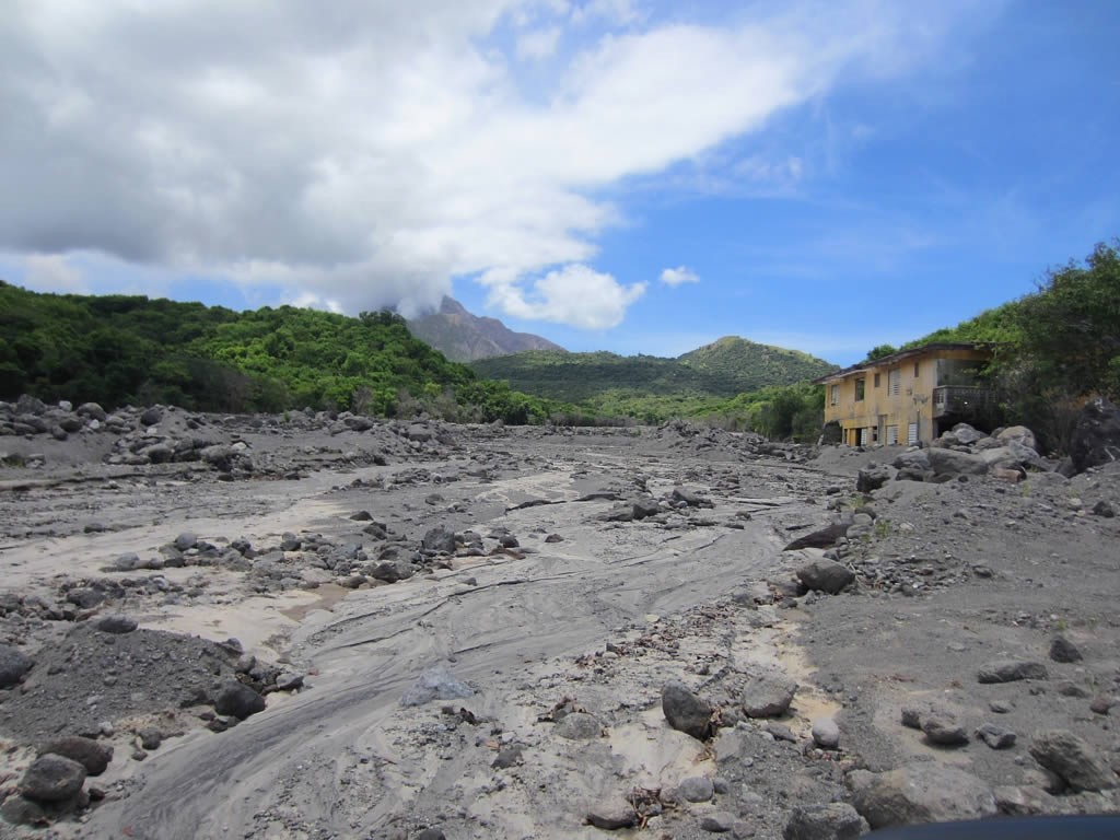 Les restes du passage de la coulée de lave et de cendres de l'éruption de 1995.