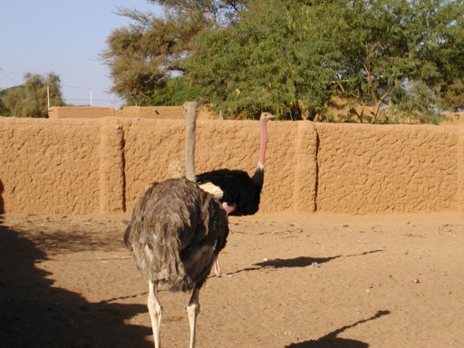 Les autruches ont quasiment disparu dans le sahara nigérien. A notre connaissance, il ne reste qu'un mâle solitaire vivant en liberté dans la zone située entre Itaghsan et la vallée d'Assodé et un couple gardé à Iférouane qui a donné naissance à 3 petits.