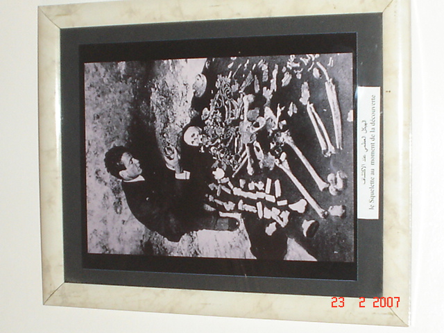 par un américain en 1925 le squellete se trouve actuellement au musée de Bardot à Alger.