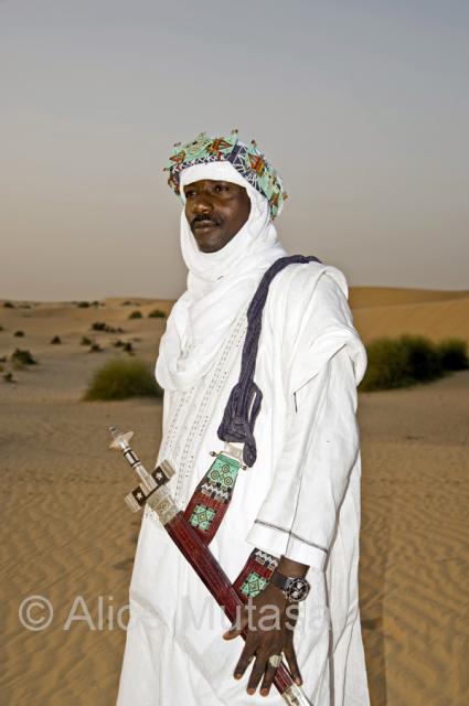 Musicien Koudede dans les dunes de Tombouctou, mars 2011. Voir: www.koudede.net