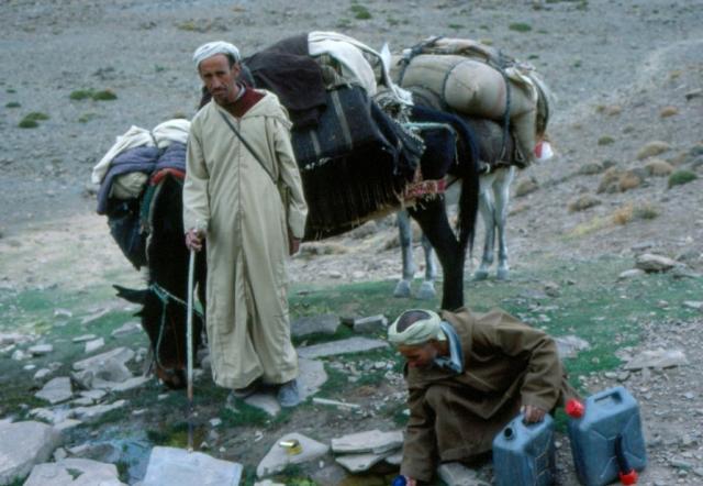 deux homme nomad des ait atta vienent au source de l eau pour l'eau
