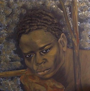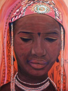 Inspirée par des scènes locales de la vie quotidienne à Agadez, Joan peint à l'huile sur toile ou sur bois.
