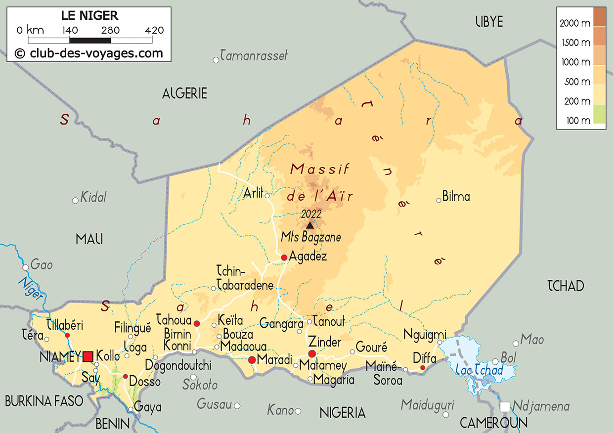 Nos différentes cartes du Niger à explorer: carte physique, carte routière, vue satellite. Pour tout savoir sur la géographie du Niger.