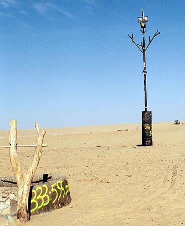 L'arbre du Ténéré, symbole de la survie dans le Sahara : Route du sel 555 en novembre 2004 |