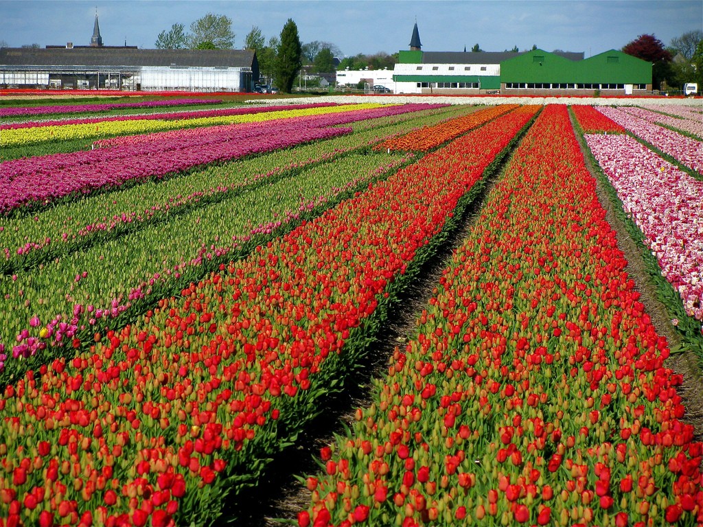 Des champs de fleurs multicolors, magnifique mais éphémère. En effet seuls les bulbes qui sont commercialisés ; en coupant les fleurs quelques jours après leur floraison, les plantes vont produire de plus gros bulbes. Les plus beaux seront exportés tandis que les plus petits seront conservés pour être planté la saison suivante.