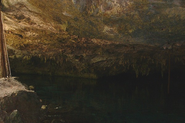 Le cenote Dos Ojos est l'un des plus admirable de toute la péninsule du Yucatan. Il compte aussi parmi les plus longs réseaux de souterrains. Les photos présentées ici, très sombres, montrent l'entrée du cénote et le départ de la rivière souterraine.