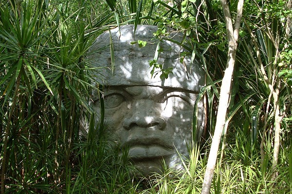 Reproduction d'une tête olmèque provenant de San Lorenzo.