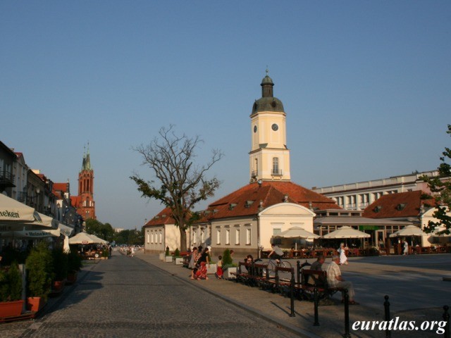 Villes : La rue Lipowa et l'hôtel de ville à Białystok |
