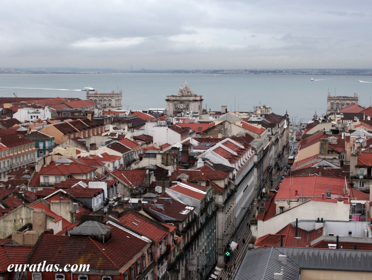 Architecture : Les toits de Lisbonne avec l'Arche de la rue Auguste
