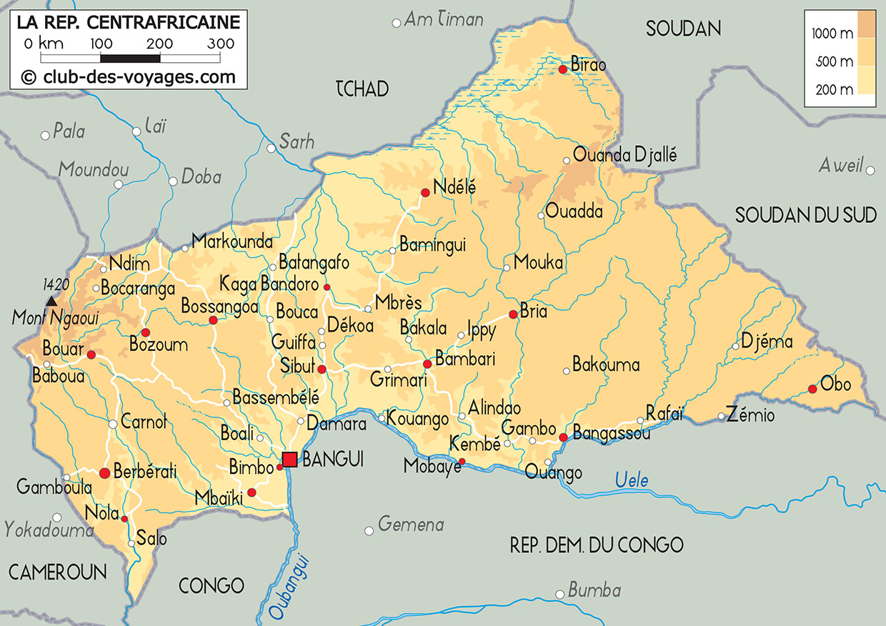 Nos différentes cartes de la République Centrafricaine à explorer: carte physique, carte routière, vue satellite. Pour tout savoir sur la géographie de la République Centrafricaine.