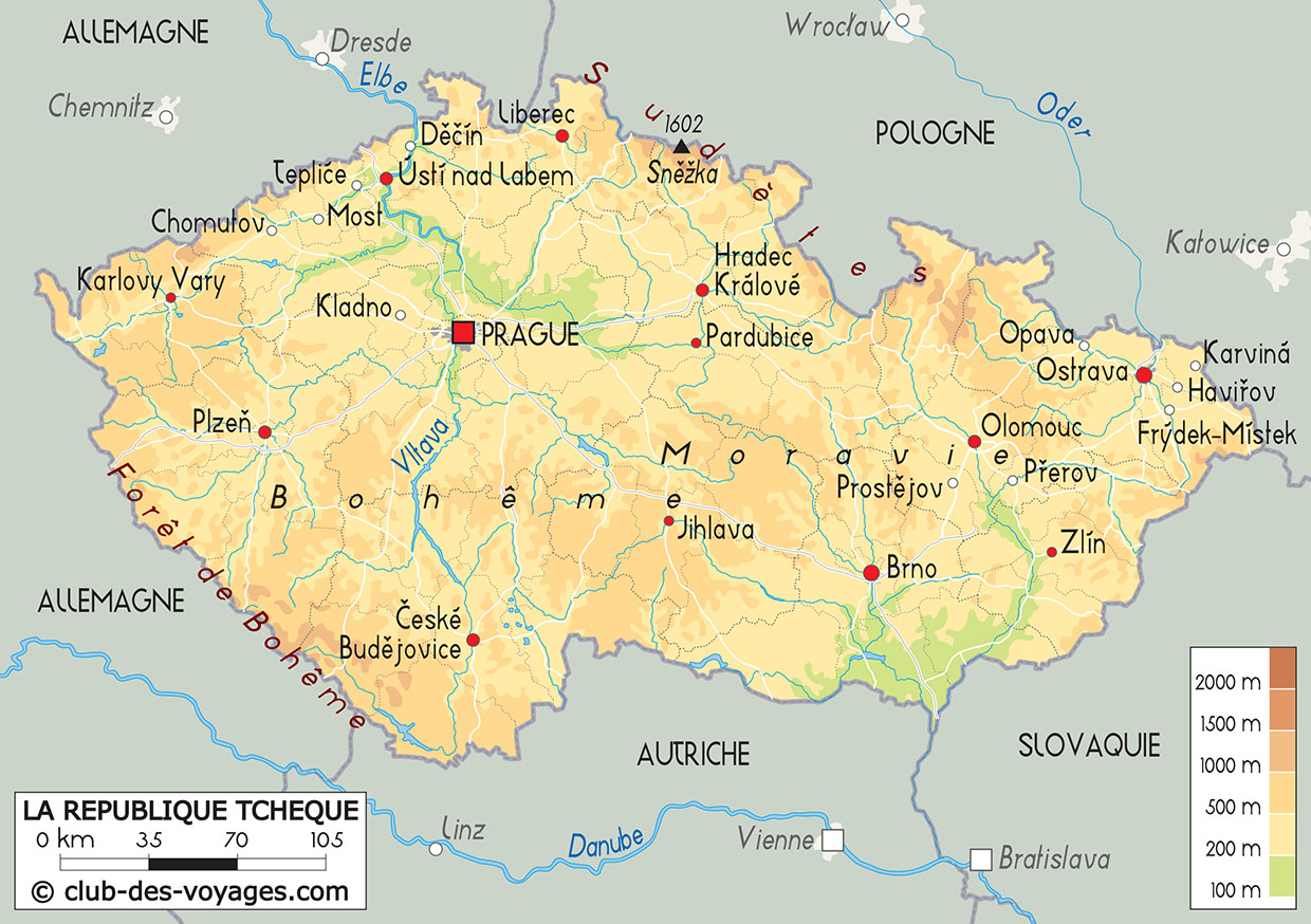 Nos différentes cartes de la République Tchèque à explorer: carte physique, carte routière, vue satellite. Pour tout savoir sur la géographie de la République Tchèque.