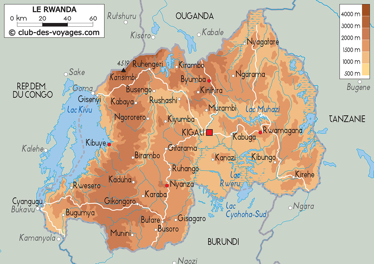 Nos différentes cartes du Rwanda à explorer: carte physique, carte routière, vue satellite. Pour tout savoir sur la géographie du Rwanda.
