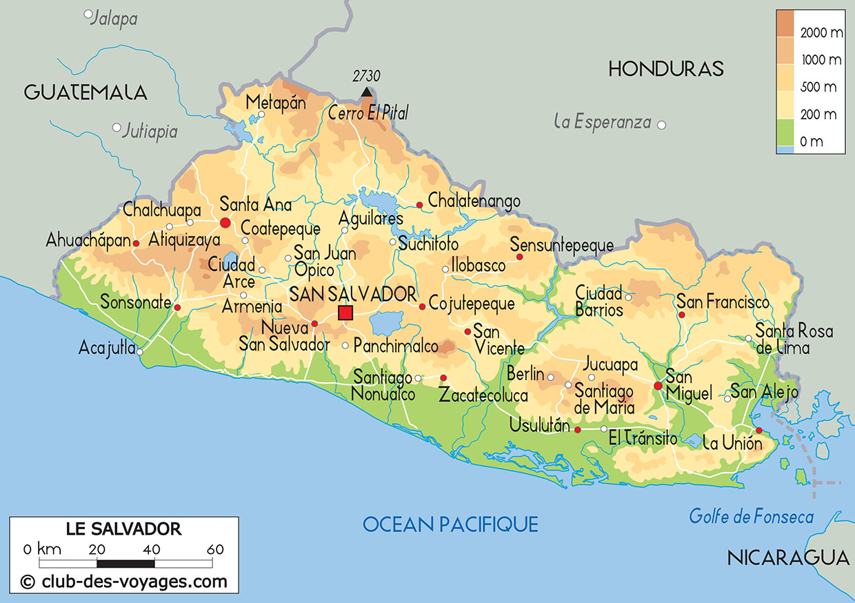 Nos différentes cartes du Salvador à explorer: carte physique, carte routière, vue satellite. Pour tout savoir sur la géographie du Salvador.
