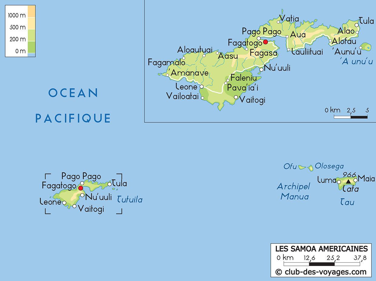Nos différentes cartes des Samoa américaines à explorer: carte physique, carte routière, vue satellite. Pour tout savoir sur la géographie des Samoa américaines.