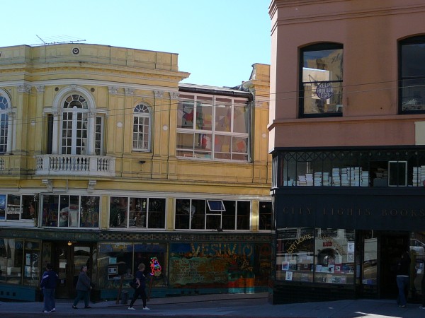 A droite la librairie City Lights Bookshop était le lieu de rencontre légendaire de ce groupe d'artistes et d'écrivains auxquels appartenaient notamment Jack Kerouac et Allan Grinsberg du mouvement beatnik.