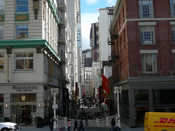 Aux côtés des centres commerciaux géants, de nombreuses boutiques, souvent de luxe, ont pignon sur rue à Union Square. Ici, sur le côté est de la place, se trouve l'entrée de Maiden Lane, une jolie rue piétonnière.