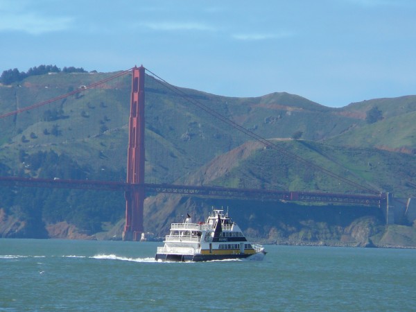 Le Golden Gate Bridge : Un ferry passant près du pont |