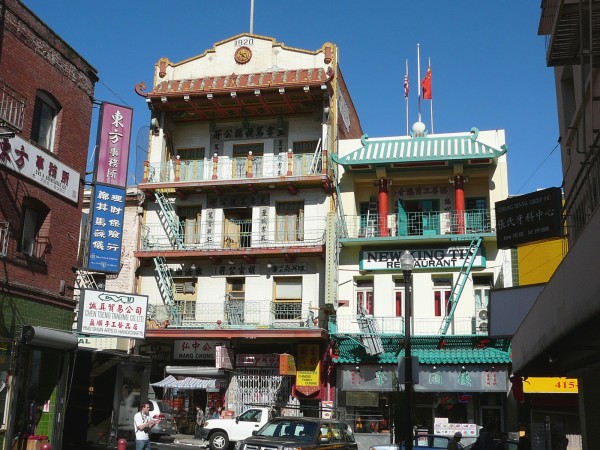 On retrouve sur Washington Street des maisons à balcons et de nombreux commerces et restaurants chinois.
