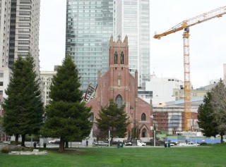 L'église Saint Patrick, fondée en 1861, est le seul édifice en brique et de style ancien dans cet environnement ultra-contemporain.