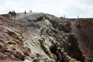 Une promenade est proposée sur Nea Kameni d'où l'on peut voir des volutes de souffre se dégager du sol.