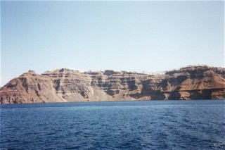 Vue sur Palea Kameni, la seconde ile au coeur du cratère.