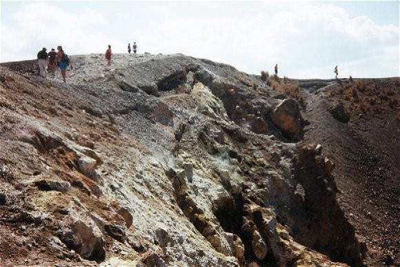 Aujourd'hui encore, on peut observer sur Nea Kameni des volutes de souffre qui se dégagent du sol.
