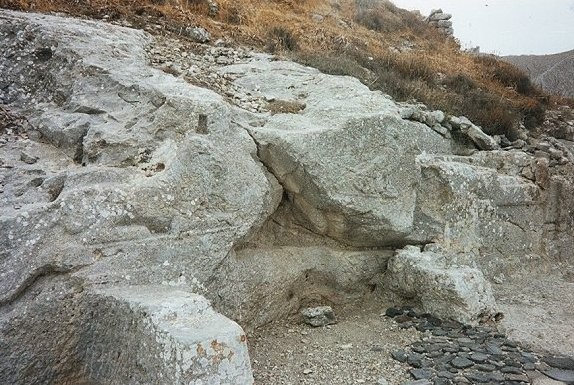 Remarquez, sur cette autre partie du Téménos, deux sculptures sur la paroi des rochers : le lion d'Apollon et l'aigle de Zeus. Si vous ne les voyez pas, passez à la photo suivante !