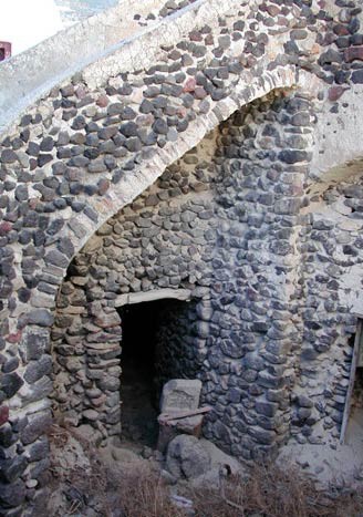 Couleurs de Santorin : Messa Gonia - Détail de mur ancien |