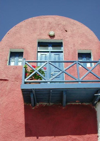Habitats à Santorin : Oia - Maison rose et balcon bleu |