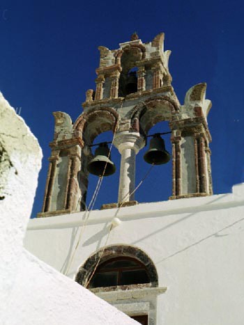 Eglises de Santorin : Pyrgos - Gros plan sur clocher |