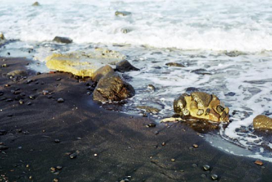 Couleurs de Santorin : Une plage de sable noir |