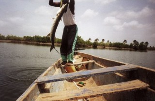 En pirogue pour visiter les villages d'Affiniam et de Djilapao, notre guide fit une courte halte, le temps de pêcher un barracuda qui sera notre déjeuner.