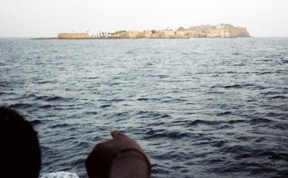 Situé à 3 km de la rive, l'ile de Gorée, que l'on aperçoit ici au loin, est accessible en Ferry depuis Dakar.