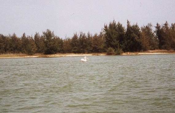 Un pélican sur la rive droite du fleuve Sénégal, côté langue de Barbarie.